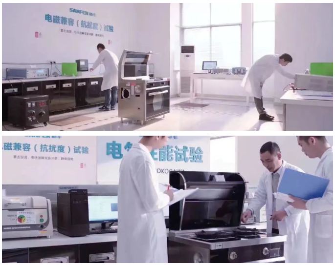帅丰拥有行业首个CNAS(中国合格评定国家认可委员会)认可的检测实验室,涵盖燃气试验室、电气试验室、噪声试验室、气味降低度试验室、油脂分离度试验室、电磁抗扰度试验室和环境试验室等,全方位覆盖了集成灶重要指标检测。