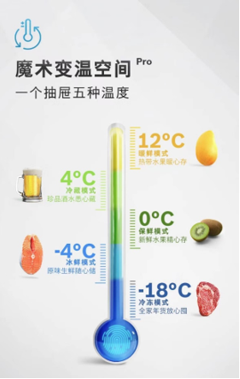 节日聚餐所需食材丰富繁杂,无论是蔬菜鲜果、牛排生鲜还是酒水饮品,都对温度、湿度有不同的存储需求。博世全域智净M7冰箱·活氧版搭载了魔术变温空间Pro,让冰箱秒变“空间魔术师”,可在冷冻(-18℃)、冰鲜(-4℃)、零度(0℃)、冷藏(4℃)、暖鲜(12℃)五种温度空间中自由切换,灵活调温,为不同食材提供更为精确、灵活的保鲜方案。