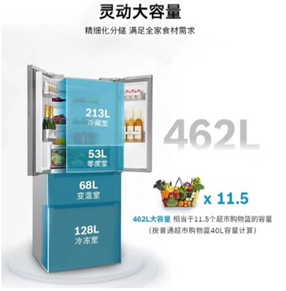 462L大容量空间设计,囤满11.5个购物篮的幸福感