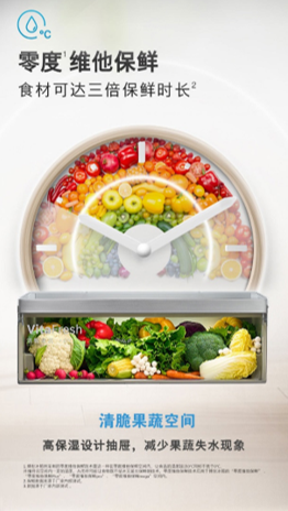 零度1维他保鲜技术,实现食材三倍保鲜2