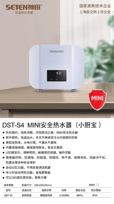2022年6月,神田推出mini安全热水器S4,这款产品主要是解决冬天冷水洗手洗菜洗碗的痛苦,属于龙头热水解决方案,之前小厨宝市场不被太多人关注,S4上市之后异常火爆,也让同行们发现了一个全新的细分市场。