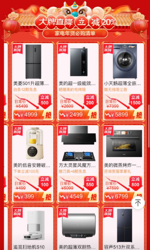 京东家电年货节为了在岁末年初时期,给予消费者更多实实在在的价格让利,还推出了大牌直降立减20%促销活动,如新风空调、游戏电视、洗地机等中高端产品,在日常到手价的基础上直降20%,尽情满足用户家电选购需求,让消费者以实惠价格买到高品质且多元的家电产品。
