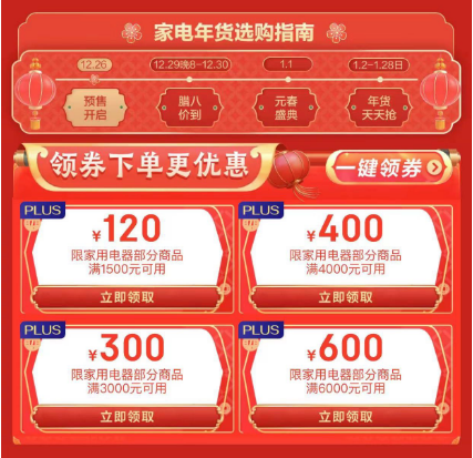 新年的脚步越发临近,家家户户都开始置办起了年货。随着我国疫情防控已进入常态化,把家里使用频率最多的老旧家电进行以旧换新也成为了大多数人的选择之一,给家里换新空调、电视、净水器等家电产品会让家人感到满满幸福感。以"过年焕新家,还得是京东"为主题的京东家电年货节活动已于12月26日火热开启,家电大牌直降20%,还有超多爆款好物家电再享以旧换新立减10%的补贴,每位PLUS会员可领取1420元PLUS超级补贴,包括满1500-120,满3000-300,满4000-400,满6000-600的优惠券,均可在京东家电年货节主会场一键领取。除此之外,今年年货节期间,京东家电还推出了“买贵必赔”的保障服务,解决了不少消费者的购物烦恼。