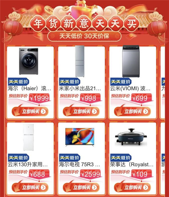 京东家电年货节期间,为消费者带来了具备“拒绝套路、天天低价、买贵必赔”的消费保障的货品,即参与此价格力度的产品,不仅在品质和功能创新上有保障,价格上也更具竞争力,目的就是打造全网抄底价。