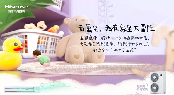 在将品牌实力不断转化成落地方案的过程中,海信中央空调始终围绕人的需求而求新,让中央空调真正成为有温度、有情怀的“空气家”。譬如,海信中央空调一直关注儿童的呼吸健康。针对地板上方30cm这一儿童活动空间容易聚集甲醛、病菌的问题,通过全健康净化模块配合无死角立体送风,保证室内空气的全方位净化,为宝宝打造健康安全线。
