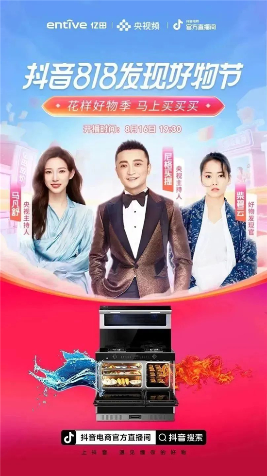 当家居美学的实力派,遇见“实力&美学兼具”的厨电新势力,8月16日,亿田再次携手抖音官方,联合央视主持人“小尼”尼格买提等一众“美好生活发现官”,引领亿万国民遇见更美好的厨房新生活!