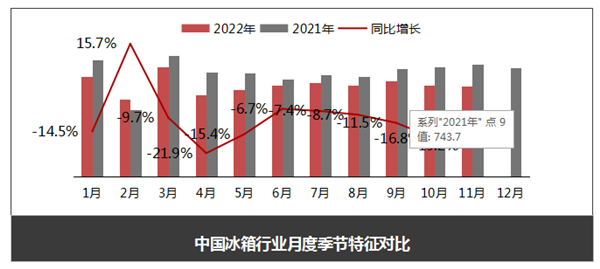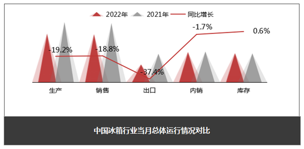 1-11月冰箱总产量为6950.8万台,同比下降11.6%;总销量为6983.4万台,同比下降11.9%;总出口量为3201.5万台,同比下降20.7%;总内销量为3781.9万条,同比下降2.9%。