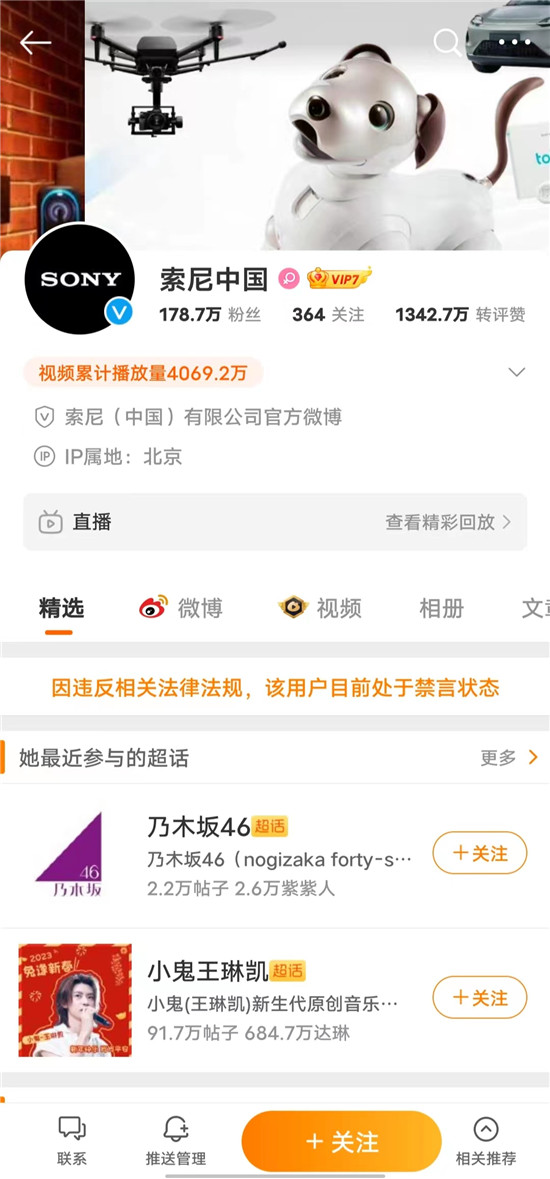 而这次的微博禁言,就是对于“索尼中国”之前多次“作妖”的惩罚。
