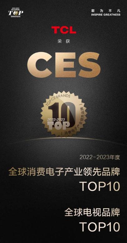 在「全球领先品牌」评选活动中,TCL荣获2022-2023年度「全球消费电子产业领先品牌TOP10」奖。此奖项以行业知名度、全球战略布局、国际市场影响力、产品创新性四大维度对参选品牌进行考核,是全球消费电子领域最具权威性、专业性和公信力的评选活动之一。