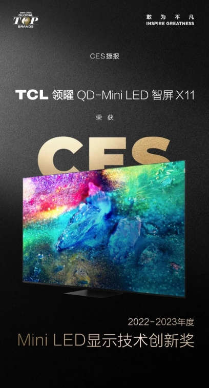 TCL领曜QD-Mini LED智屏X11凭借第三代QD-Mini LED技术,荣获「年度Mini LED显示创新奖」。