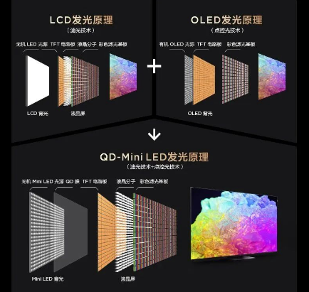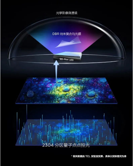 QD-Mini LED技术作为TCL旗下尖端显示技术,兼具LCD和OLED的技术优势,突破性解决了微粒LED芯片巨量转移的行业技术难题,将面光源升级为像素级点光源;同时沿用了全球领先的QLED技术,让产品拥有超高对比度、超高亮度、超高色域、超长寿命等优势。由于其带来了近乎极致的体验,QD-Mini LED技术被行业视为真正的下一代主流大屏显示技术,目前TCL已经占领背光设计、背光技术、整机模组等12个领域48项技术制高点,共计拥有470项专利,在显示行业内全面领先。