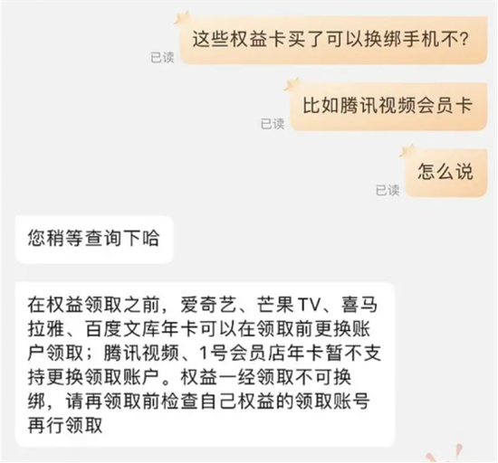 由于活动规则上不同账号的绑定规则并不是非常清晰,于是有用户主张询问客服,首先客服的回答也并不统一,总结得到的答案是:部分权益比如腾讯会员和1号店会员不支持换绑不同的手机号。
