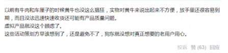 部分用户认为,往年的套餐中均有牛肉、车厘子等生鲜产品,相对比较难“出手”。这次的套餐全部为虚拟产品,完全是针对黄牛的“定制”产品。为此,部分京东老用户认为:京东已经不在乎用户本身了,在这种前提下,首先会员不会开心,其次会员服务必然每况愈下,在本次活动中已经出现找不到“活人”客服的情况了。因此京东PLUS会员没有存续的必要了,并将存续期的会员退款处理了。