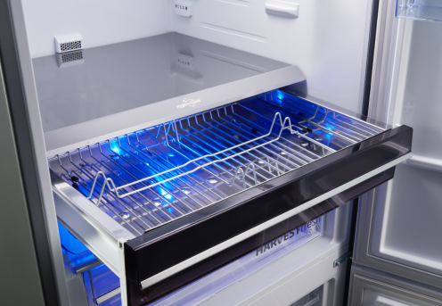 还有Beko倍科创新的HarvestFresh光合养鲜技术,是在冰箱里给果蔬创造一个大自然环境,24小时光谱照耀——蓝光、绿光、红光、黑暗,四种状态,按自然光的光谱配比不同时长,模拟自然光照环境。据英国Intertek权威认证,通过HarvestFresh光合养鲜室的光照,维C及维A含量分别提升45%和30%,让果蔬能够一直保持如刚采摘一般新鲜。