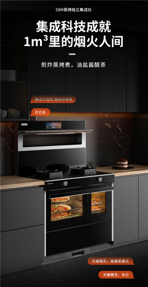 现如今,吃很简单,想要吃得舒心而健康却不是那么简单。美食,讲究色香味俱全,营养均衡而全面。这就需要多种烹饪方式专业的配合。鲜美的食材需要高温蒸制,保留其本味,释放其鲜味;肥美的食材需要3D循环烤或者健康空气炸,酥脆自如,满足胃口。亿田S8M蒸烤独立集成灶,48L蒸箱与26L烤箱同时运作,美味,一同加速送达!祭灶神的心愿,让S8M帮你实现!