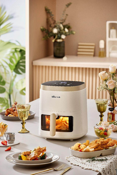 时刻关注年轻人需求动向的小熊电器,积极创新研发,围绕空气炸锅的产品设计、功能优化、智能体验推进升级,提升用户体验。例如,针对普通空气炸锅是封闭工作,用户难以掌握烹饪状态,需要频繁拿出炸篮查看又容易影响食物口感,更是大大加重了年轻人的烹饪负担。为此,小熊电器创新可视化的设计,增加超大广角可视窗,无需开盖即可随时确认锅内食物的烹饪状态,提升了用户实际体验。