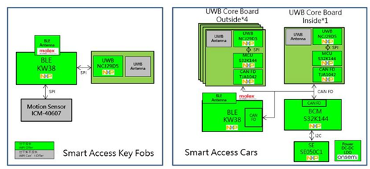 2021年7月,CCC(车联网)联盟发布了汽车数字密钥3.0版规范,明确了第三代数字钥匙是基于UWB/BLE(蓝牙)+NFC的互联方案。自此UWB技术在车端运用的时代正式开启。依托于UWB的厘米级定位技术,车主可以在距离车辆三米的位置时唤醒车辆,包括大灯、尾灯、车内灯光;在距离1米时进行车门解锁;在进入汽车后自动开启空调、中控屏等应用。大联大世平基于NXP NCJ29D5芯片推出的精度达厘米级的汽车数字钥匙方案,满足新一代汽车数字钥匙的技术需求。