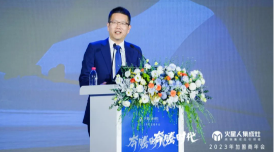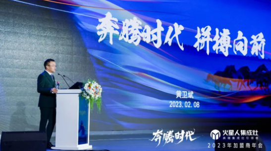会议伊始,火星人厨具股份有限公司董事长黄卫斌向到场的嘉宾们表示感谢并发表致辞,“开局就是决战、起步就要冲刺。今天是开年第一会,在这个千人会场里,我们要把目光聚焦一个主题,就是增长。把C位留一个群体,就是广大全国加盟商朋友,把行动统一到一个目标,就是抢回失去的三年!新的一年,疫情影响逐步消退,经济形势逐渐向好,我们要抢抓机遇谋发展,凝心聚力求突破,全力以赴跑出加速度、闯出新天地、干出新精彩!”
