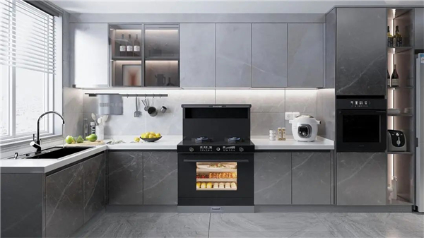 一台佳歌集成灶,就包含了油烟机、燃气灶、蒸箱、烤箱、消毒柜、空气炸锅、发酵机等功能,省下了许多电器的采购钱,还极大提升了厨房的空间整洁度和环境美感。