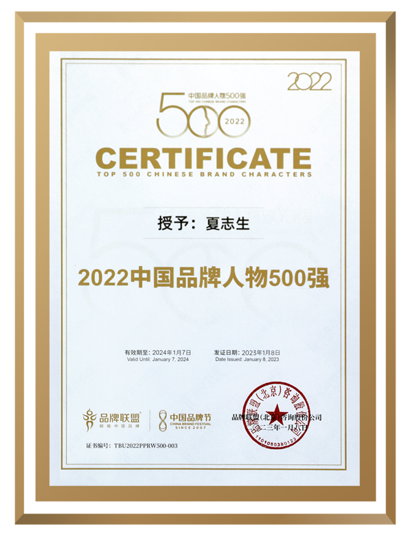 品牌是企业综合竞争力的突出体现,品牌和企业领航者更是企业持续发展的特别优势。此次,夏志生从5000余位知名品牌人物中脱颖而出,上榜《2022中国品牌人物500强》,是社会对美大创始人、集成灶发明人、行业奠基者夏志生先生20余年来对行业的突出贡献及美大品牌影响力的高度肯定。