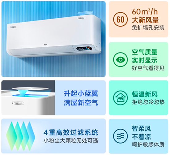 冬季如何做到不开窗也能循环室内外空气,让空气时刻清新,不如看看这台TCL 1.5匹新一级变频新风空调。适配可视化升降小蓝翼新风口,可加快聚集新风导入室内,微正压新风换气技术,有效缓解室内空气不流畅的状况,稀释PM2.5等有害气体,做到温度调节、新风增氧、空气净化多效合一。内置TVOC气体监测传感器,可实时监测居家常见有害气体,根据识别浓度实时变化颜色,空气质量尽在掌握。家电开年焕新活动期间,京东价2687元。