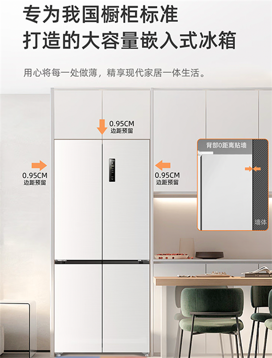 厨房装修,如何让冰箱与橱柜完美融合,是不少人考虑的问题,既要提前留出嵌入的空间,还要考虑两者之间颜色是否协调适配,这款美菱无忧嵌501升对开门冰箱,专为我国家庭60cm橱柜标准打造的嵌入式冰箱,薄壁空间技术让保温效果提升10倍,从而做到机身减薄、门体减薄、箱体减薄。精致的陶瓷白高定面板,宛如曼妙青花瓷器,在清雅与精致中体验家居美感。501升鲜储空间,分区精细,可以轻松囤下全家两周食材,家电开年焕新活动期间,京东价格4799元。