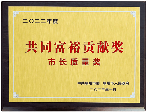 近日,在中共嵊州市委、嵊州市人民政府关于创新深化、改革攻坚、开放提升暨“奋战一季度、夺取开门红”部署大会上,金帝作为行业的头部企业,荣获2022年度嵊州市“共同富裕贡献奖市长质量奖”!