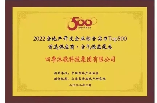 荣誉见证实力。3月,四季沐歌“抑霜型空气源热泵机组研发与应用”项目成功获得中国制冷学会颁发的“中国制冷学会科学技术发明一等奖”获奖证书。3月29日,四季沐歌科技集团有限公司凭借领先的综合实力荣膺“2022年房地产开发企业综合实力TOP500首选供应商”空气源热泵类、太阳能系统类及净水设备类代表企业。4月,四季沐歌荣获“2022中国水产行业·十大科技创新奖”并荣登“2022中国水产行业百强品牌价值榜”。