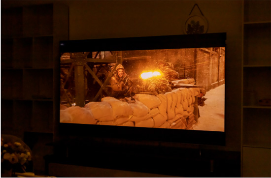 我爸爱看战争片,那天晚上就找了个大片大家一起看,到战斗激烈的时候,这电视的优点就更明显了,迅速移动的镜头加上高速切换的场景,丝毫没有拖沓的感觉,机关枪的火力,到战士们脸上的表情细节,都体现得相当细腻,加上这电视音响还特别好,真有种身处战场的紧张感。也许是太真实了,我奶奶都从里屋出来吼我爸了,说看啥不好非看打仗的,好日子刚过几天就不消停了,给我爸数落了一顿,后来就换看别的了,大家在一旁都幸灾乐祸,好不欢乐。