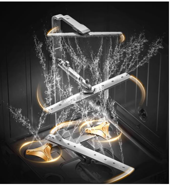 中国家庭习惯煎炒烹炸,饮食偏向于浓油赤酱,碗筷重油重污,传统洗碗机往往会留下清洁死角。针对中国饮食习惯以及餐具形态多样的问题,美的晶焰洗碗机S62-K采用三层五臂系统与BLDC双变频电机强强联合,高速旋转释放高压水流进行全方位无死角冲刷,高效溶解、剥离油污,令餐具清洗更彻底。