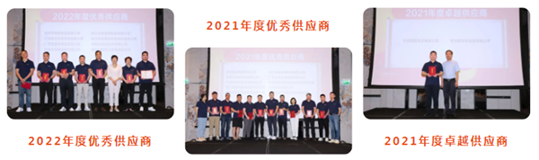 英才汇流,万众同行。百余位供应商因亿田而结缘,为亿田发展缪力同心。因此,本次会议专门设置了“2022年度优秀供应商”、“2021年度优秀供应商”、“2021年度卓越供应商”多项大奖,亿田董事长孙伟勇、副董事长陈月华上台向各位获奖供应商代表颁奖予以表彰。望未来更多优秀供应商与亿田万水同舟!
