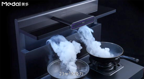 美多F16语音集成灶便在此基础上,将内部各项参数全面提升,进一步强化吸烟能力。烟机吸力上从原有的18m³/min进阶至23m³/min,最大静压超过1000pa以上;直流变频引擎强力运转,升级清洗技术确保油烟零残留。