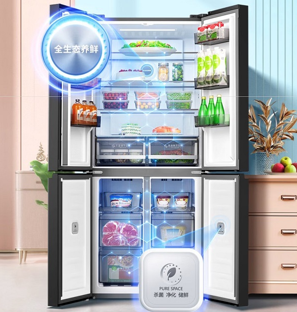 容声离子净味系列BCD-501WD18FP风冷十字对开门冰箱,拥有501L大容量,冷藏室296L,变温室31L,冷冻室174L,整体分配充分考虑了大部分人的使用环境,还是比较合理的。采用矢量变频压缩机+多频离心风机组合,节能降噪,综合耗电低至0.83kw/天,非常省电。拥有7kg/12h超强冷冻能力,-25℃深冷速冻,快速通过冰晶生成带,减少口感损失。原价4699元,京东现在购买可享满4690减600优惠券,叠加满4000减400京彩绿色消费券只需3699元,感兴趣的朋友不要错过!
