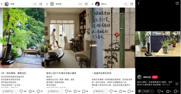 在活动期间,添可还邀请了人文、家居、时尚及亲子类的KOL响应参与,带动更多人写诗的热情,同时也提供更多的参照,更好地挖掘参与者对春日小确幸的感知力,丰富活动内容。在博主的视角下,添可芙万与他们的春日居所相得益彰,带来了更好的生活体验,让人心向往之。