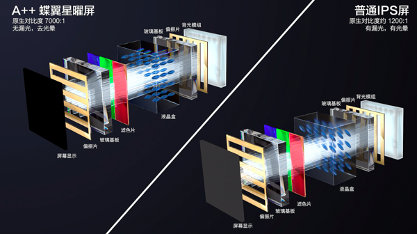 在关键的屏幕显示上,TCL X11G搭载了A++蝶翼星曜屏,它和Mini LED显示技术是绝配,采用纳米级仿生科技,结构形似蝶翼状,能够精准控制通过液晶层的光线,实现5倍对比度的提升;同时增加了一层抗环境光的超低反射率膜,能够有效降低环境光线对画面显示的干扰,让画面更通透,细节更清晰。