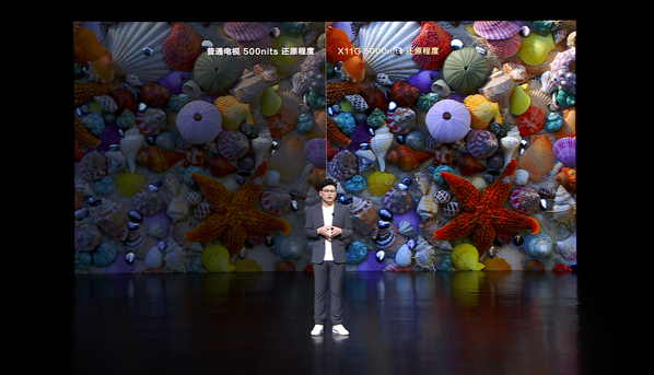 芯片方面,将上一代领曜芯片M1升级到了M2,还增加了一颗独立的TXR Mini LED画质增强芯片,实现像素级画质调校,突破典藏级影像体验。除了这两颗芯片外,为了发挥双5000的极致效果,X11G还搭载了1296颗背光驱动芯片,它具备双向16bit控制能力,可以实现16bit的亮度调节和16bit的灰度调节,带来了更极致的观赏体验。