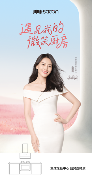 高圆圆微笑的正面形象,与帅康“创造健康美好生活”的企业使命十分相符。从研发出行业第一台深型吸油烟机,到如今拥有全品类厨房电器,帅康一直凭借专业、前沿的创新技术,通过解决厨房痛点需求为用户带来美好生活。