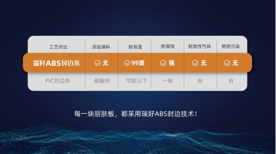 许多家具采用胶水粘合封边带和板材,连接处有着明显的胶线和缝隙,很容易成为细菌病毒滋生的温床。而且这些角角落落日常也难以清洁,时间一久,很容易成为健康的一大威胁。而丽博丽肤板采用瑞好封边技术,一体成型、零缝隙、无胶线,在众多板材中多颖而出。