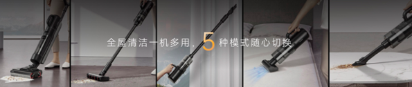 追觅洗地机M13 Beta主打全屋清洁,一机多用,除了专注于扫地、拖地、洗地等地面清洁,还拥有丰富的配件。通过更换不同的刷头,追觅洗地机M13 Beta即可当作吸尘器、随手吸、除螨仪等工具使用,轻松切换5种清洁模式,从平面、立面、夹角面和微观面等多个维度进行深度清洁,无惧卫生死角。