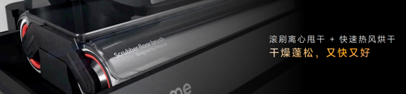 清洗之后的拖布、滚刷如果不能做到及时干燥,很容易滋生细菌、散发异味。目前洗地机行业比较常见的干燥方式是离心甩干,然后自然阴干或者冷风风干,但耗时较长,可能3-6小时甚至更久,滚刷足以成为细菌滋生的温床,还将大大缩短滚刷使用寿命。