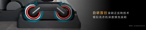 该技术模拟了洗衣机的揉洗过程,双滚刷正反交替旋转,提高自清洁的效率。同时,配合齿形刮条设计,能将滚刷表面的毛发,乃至滚刷根部的残污刮掉,保证滚刷的干净清洁及内部吸污口的畅通。