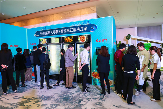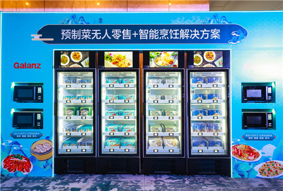 在2023格兰仕328中国市场年会现场,预制菜“无人零售+智能烹饪”体验区人头攒动,与会嘉宾争相体验。