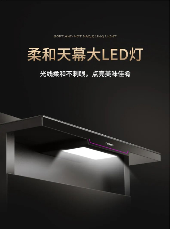 美多深谙当下消费主力们对于颜值厨房的追求,深空灰拢烟板的深邃质感,搭配亮紫色氛围灯提升厨房的整体颜值。超薄拢烟采用一体化工艺匠心打造,新升级纳米无指纹台面和烟腔,提升清洁能力的同时更与现代化家居厨房更好地融为一体。