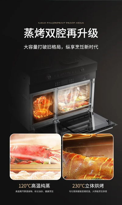 创新智控彩屏实现功能一屏智能掌控,自带高清的触控烹饪导航,直观呈现佳肴本色,下厨如同看图点菜般轻松,享受烹饪乐趣。