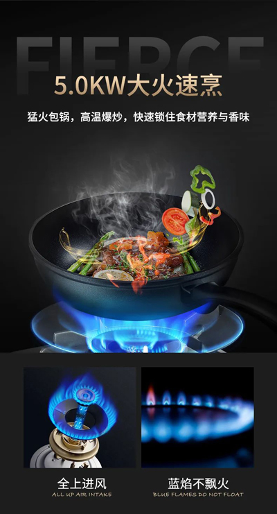 煎炒蒸烤天天不重样。对比普通燃气灶,美多E16M语音集成灶全上进风燃烧器,瞬间释放5.0kw超燃大火力,猛火爆炒更加集中高效,让美味肆意在厨房狂飙。