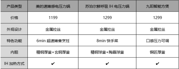 本次我们挑选了1000元左右的热门三款电压力锅,它们是:苏泊尔鲜呼吸IH电压力锅SY-50FH75Q、九阳智能方煲Y50C-B532以及美的速嫩感电压力锅MY-S572N。并通过评测看看这个价位段的电压力锅表现如何,为大家日后的购买提供一个参考。