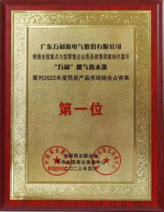 4月20日,由中国商业联合会、中华全国商业信息中心联合主办的“2023中国消费品市场发展大会暨第三十一届中国市场商品销售统计结果发布会”在北京召开,中华全国商业信息中心主任李殿禹在会上发布了2022年度中国市场商品销售统计结果。根据全国大型零售企业商品销售调查统计显示,广东万和新电气股份有限公司旗下的“万和”燃气热水器荣列2022年度同类产品市场综合占有率第一位,这是“万和”燃气热水器连续十九年年获得此项桂冠。