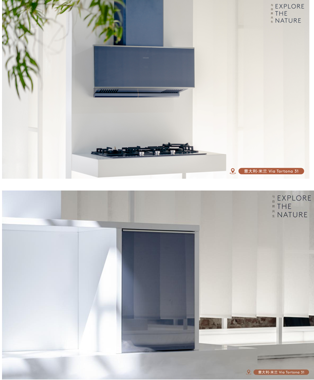 在“自然厨房”部分,受鹦鹉螺螺旋规律启发,COLMO设计了画框烟机的降阻降噪通道,使烟机工作时的声音如同自然风声般静谧,这让厨房仿佛置身于绿树丛林之中。这为菁英家庭营造了一个可以在大自然般的环境中享受烹饪乐趣的空间。用餐过后,COLMO TURING洗碗机的水雾喷淋臂能够精准洗刷餐具,无损伤餐具的同时清洁干净,解放双手无后顾之忧。