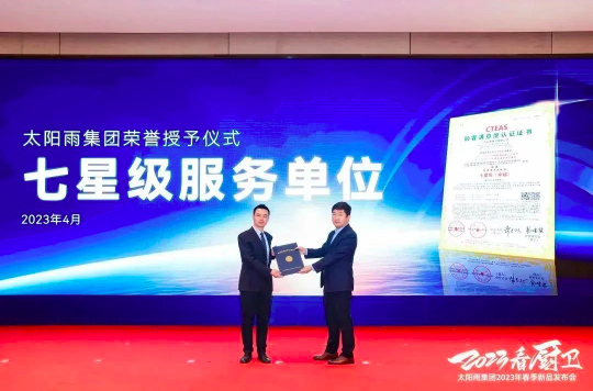 太阳雨集团To C事业部客户服务中心总监郭康、中国商业联合会、北京五洲天宇认证中心副主任李歆宇,共同登台进行CTEAS售后服务体系完整程度七星级服务单位认证证书授牌仪式。太阳雨坚守初心,用心做服务,服务第一战略始终如一,切实维护消费者权益,做到守好企业良心底线。