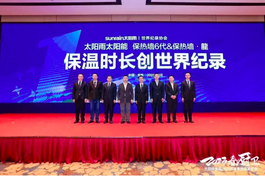 太阳雨太阳能保热墙6&保热墙·龍保温时长155小时创世界纪录,世界纪录官方认证保热墙6代&保热墙·龍保温时长创世界纪录,并为保热墙6代&保热墙·龍颁发世界纪录认证证书。